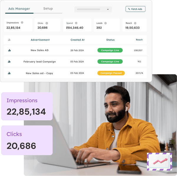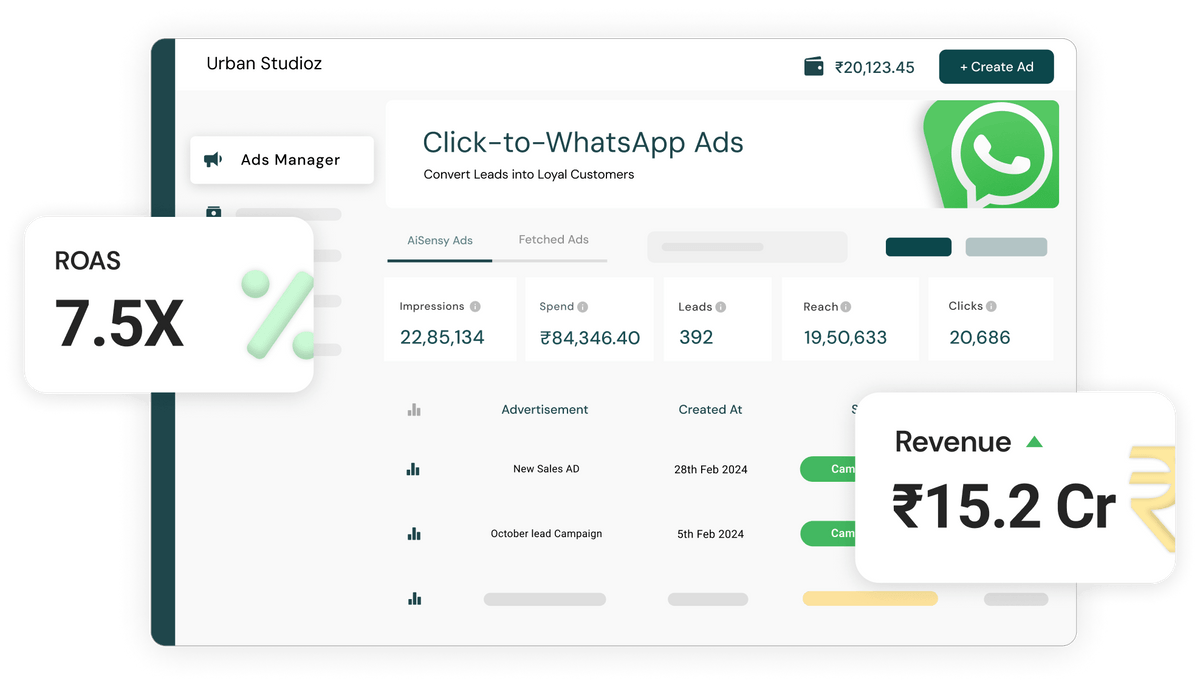 Recharge ad credits, Create & run ads, segregate leads, re-engage with Broadcasts & drive conversions.